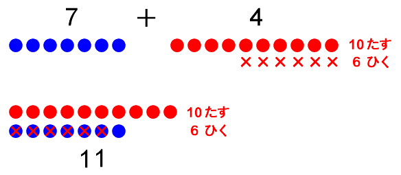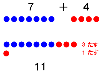 7 + 4 = 11(たし算の例1)