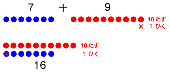 7 + 9 = 16(たし算の例2)