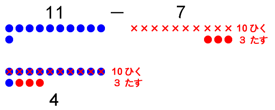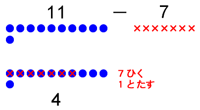 11 - 7 = 4(ひき算の例1)