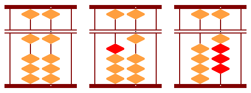 そろばんの計算では、くり上がりやくり下がりがあるとき、