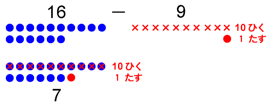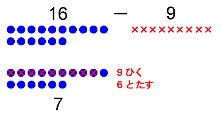 16 - 9 = 7(ひき算の例2)